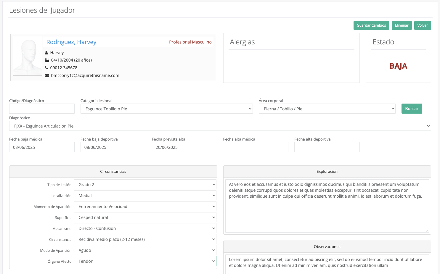 Con Gesdep Salud cuidarás a tus deportistas como se merecen. Tendrás en tus manos una herramienta que te permite seguir de cerca cada diagnóstico, cada lesión y cada tratamiento, ya sea médico, de fisioterapia o de readaptación. Todo de forma fácil y segura, con estadísticas que te ayudan a entender mejor su evolución y a tomar decisiones que realmente marcan la diferencia en su bienestar y rendimiento.
