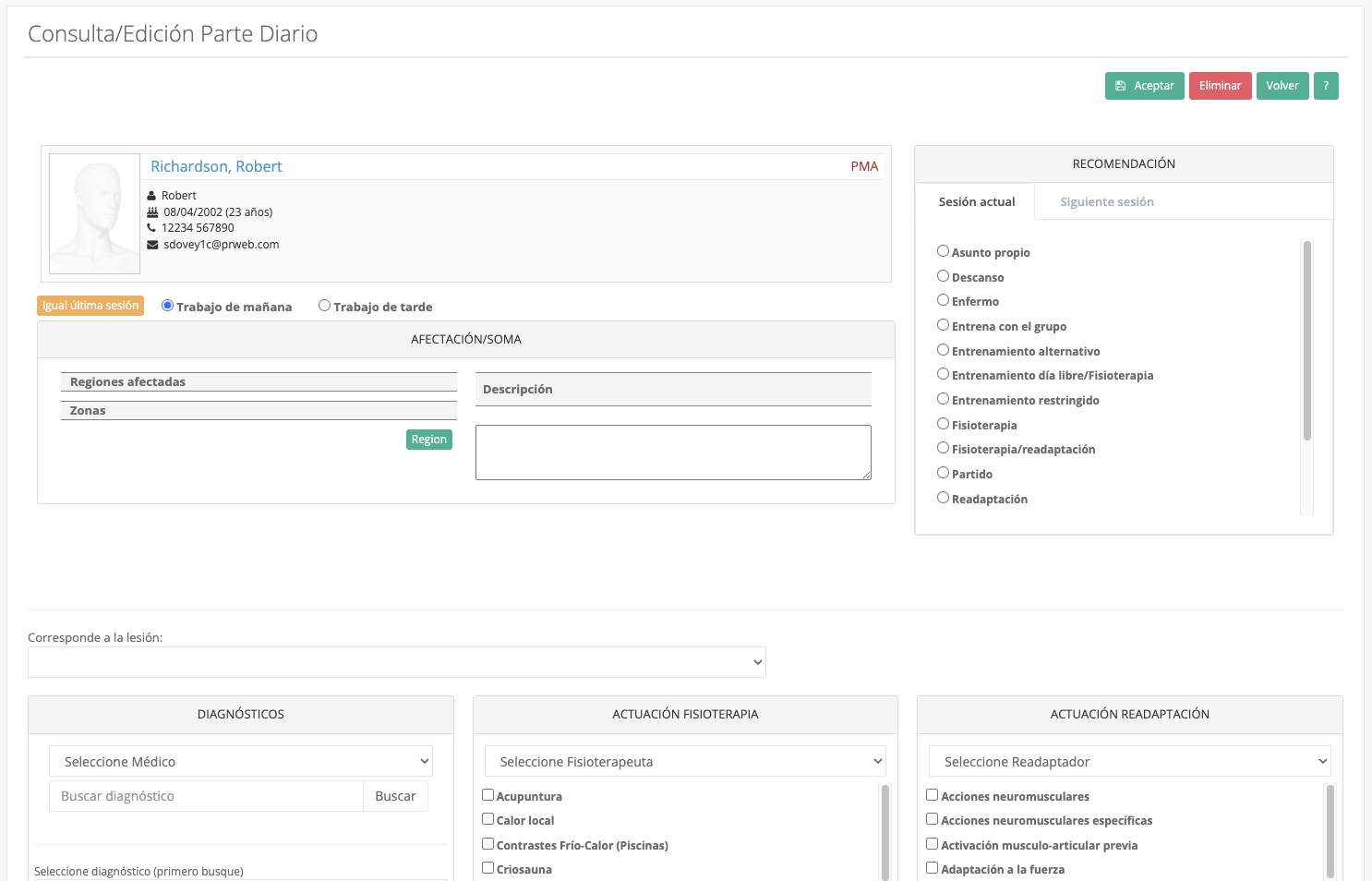 Con Gesdep Salud cuidarás a tus deportistas como se merecen. Tendrás en tus manos una herramienta que te permite seguir de cerca cada diagnóstico, cada lesión y cada tratamiento, ya sea médico, de fisioterapia o de readaptación. Todo de forma fácil y segura, con estadísticas que te ayudan a entender mejor su evolución y a tomar decisiones que realmente marcan la diferencia en su bienestar y rendimiento.